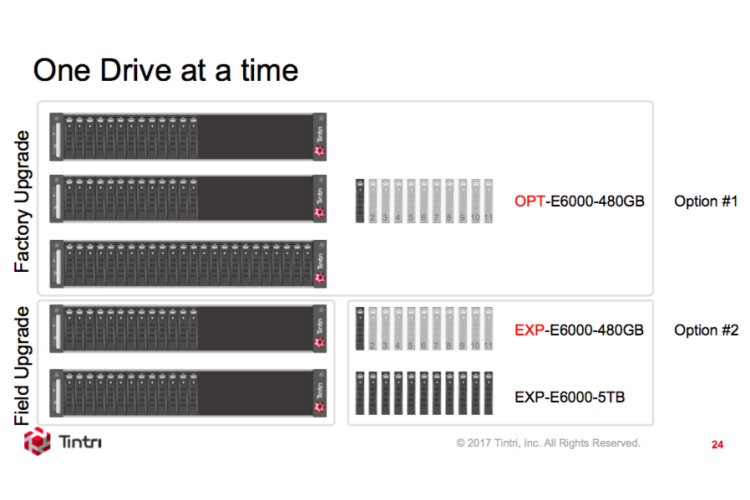 Tintri hat Tintri FlexDrive angekündigt. FlexDrive ist eine Lösung zur Erweiterung von Tintri All-Flash- Speichern der EC6000-Serie, die es Benutzern ermöglicht, die Systemkapazität gemäß ihren Anforderungen zu erhöhen, indem sie einzelne Laufwerke hinzufügen.