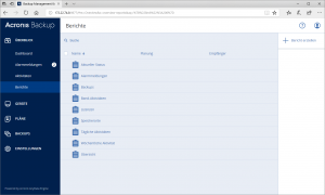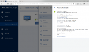 Der Bereich „Pläne“ ermöglicht das Anlegen von Plänen für Backups, Replikationen, Bereinigungsvorgänge, VM-Konvertierungen und so weiter und „Backups“ dient zum Management der Speicherorte. Die „Einstellungen“ ermöglichen schließlich das Verwalten der Backup-Software selbst mit Administratorkonten, Agenten, einer Bandverwaltung, den Lizenzen, den E-Mail-Benachrichtigungen, Updates und vielem mehr.