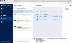 Sobald die diesbezügliche Auswahl getroffen wurde, ging es an die Definition des Backup-Ziels. Neben dem bereits erwähnten Cloud-Speicher und lokalen Ordnern sowie Bandlaufwerken unterstützt die Software an dieser Stelle auch so genannte Storage Nodes, die sich auf Rechnern im LAN installieren lassen und Unterstützung für Deduplizierung an Quelle und Ziel, Verschlüsselung und Backups auf einem zentralen Bandgerät über das Netz bieten. Diese Storage Nodes existieren hauptsächlich aus historischen Gründen. Für Umgebungen, in denen sie nicht (beispielsweise für Recoveries und ähnliches) benötigt werden, sollte stattdessen der aktuellere „Acronis Storage“ zum Einsatz kommen. Dabei handelt es sich um einen redundanten Speicher mit Selbstheilungsfunktionen, der ebenfalls separat installiert werden muss. Bei der Datensicherung über das Netz nutzt die Software auch SFTP-Server und NFS- sowie CIFS/SMB-Shares.