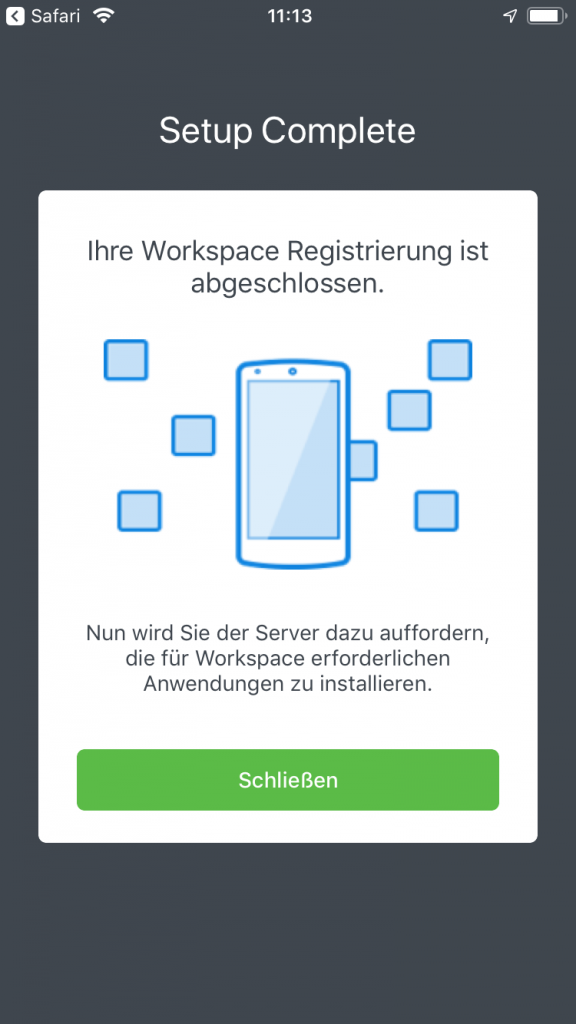 Um nun unser iPhone in unsere Testumgebung zu integrieren, mussten wir im ersten Schritt eine Apple MDM Push-Zertifikat zu unserer Workspace Management-Konsole hinzufügen. Dieses versetzt Pulse Workspace in die Lage, Policies, Updates und Aktionen auf die verwalteten iOS-Geräte zu pushen.