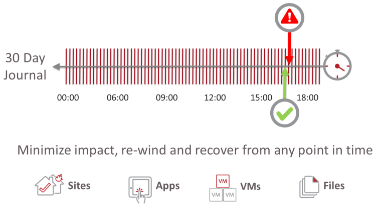 Die kontinuierliche Datenreplikation (Continuous Data Protection, CDP) ist, nach Ansicht vieler Experten, die Zukunft des Backups. CDP repliziert jede einzelne IO in Echtzeit, sodass RPOs von wenigen Sekunden erreicht werden können. Alle replizierten Änderungen werden in einem Journal gespeichert, so dass man einfach auf den neuesten Zeitpunkt zurückgreifen kann – mit manchen Lösungen sogar bis zu 30 Tagen in der Vergangenheit. CDP-basierte Plattformen ermöglichen nicht nur sehr geringen Datenverlust bei Ausfällen, dank Orchestrierung und Automatisierung können Dateien, Anwendungen, VMs oder sogar ganze Rechenzentren mit wenigen Klicks wiederhergestellt werden. Die meisten Anwendungsfälle, die eine granulare Wiederherstellung erfordern, wie zum Beispiel Dateilöschungen, Datenbankbeschädigung oder Ransomware, erfordern nur eine kurzfristige Datensicherung. Wenn beispielsweise ein Ausfall um 17:26 Uhr eintritt, ermöglicht CDP die Wiederherstellung von Daten die um 17:25 Uhr erstellt und gesichert wurden. Ein Backup, das seit mindestens vier Stunden veraltet sein könnte, hilft in diesem Fall nicht weiter.