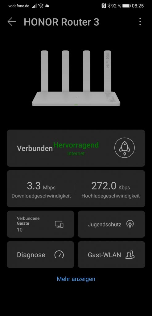 Ansonsten kann man über die App noch das WLAN verwalten, mit Signalstärke, Name, Passwort und ähnlichem. Optionen zum Konfigurieren des Internet-Verbindungstyps, zum Aktivieren von IPv6 und zum Setzen von Timern zum automatischen Ein- und Ausschalten des WLANs schließen gemeinsam mit einer Reboot-Funktion und Ähnlichem dem Leistungsumfang der App ab.