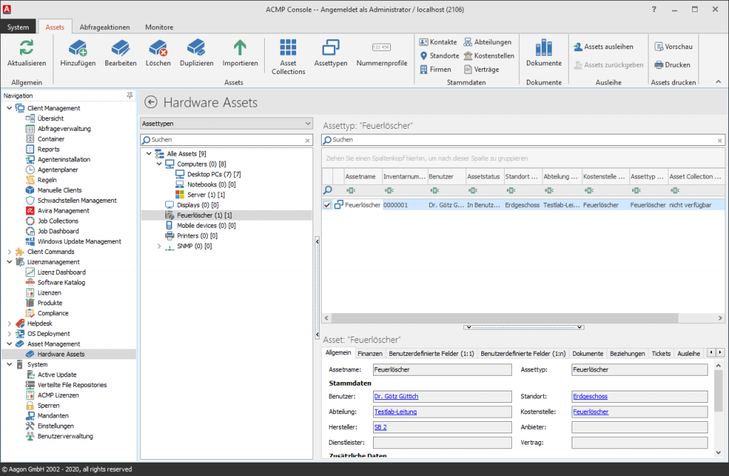 Wenden wir uns nun, nachdem wir alle erforderlichen Dienste eingerichtet haben, dem Asset-Management-Feature zu. Dieses ist nicht nur dazu in der Lage, IT-Assets zu verwalten, sondern beherrscht wie gesagt auch das Management anderer Asset-Arten, wie beispielsweise Feuerlöschern.