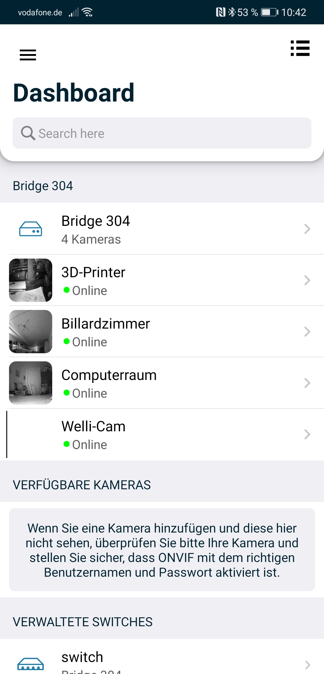 Für die mobile Nutzung des Videoüberwachungssystems stellt Eagle Eye auch eine App für Android und iOS zur Verfügung, die praktisch den gleichen Funktionsumfang wie das beschriebene Web-Interface hat. Diese stellte sich in unserem Test als sehr nützlich heraus. Zum Testzeitpunkt war die Version 7.8.0 der App aktuell, deren Einsatz unbedingt unbedingt empfohlen wird, da wir im Test mit der Stabilität der Vorgängerversion ein paar Probleme hatten.