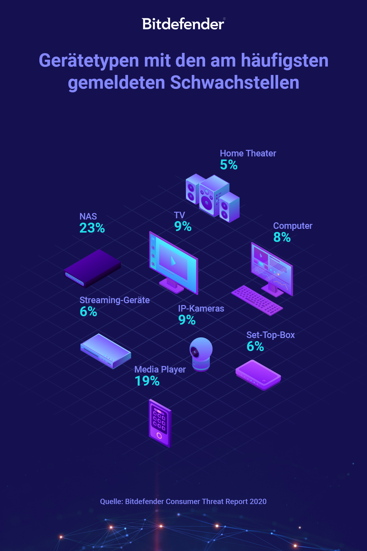 - Sich der Risiken bewusst sein: Auch der Normalverbraucher kann ein Angriffsziel werden. Viele Nutzer denken, dass sich niemand für ihr Heimnetzwerk interessiert. Dieses Gefühl ist trügerisch. Eine teure Immobile mag zum Hack der digitalen Türklinke verleiten. Manche Cyber-Kriminelle wollen zudem gar nicht den Besitzer des Netzwerkes angreifen, sondern die Hardware für DDoS-Attacken nutzen. Andere versuchen, darüber ins Unternehmensnetz zu gelangen. Diese Gefahr merkt der Anwender unter Umständen nicht, weil sie ihn nicht direkt betrifft.