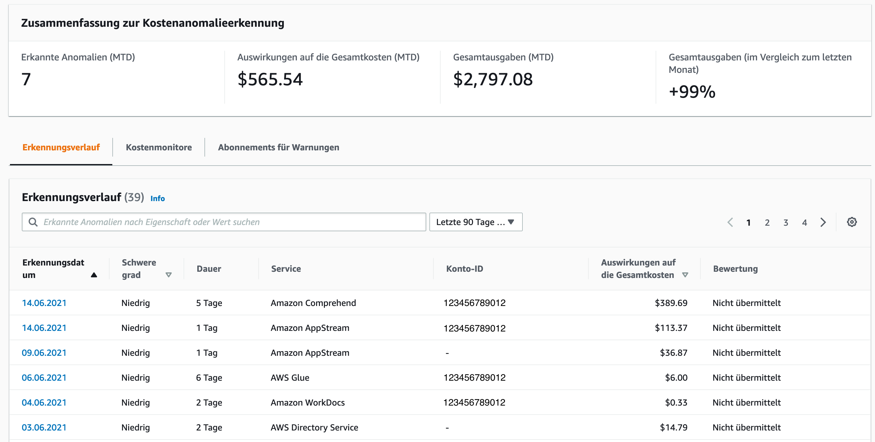 Kostenkontrolle mit AWS Cost Anomaly Detection
