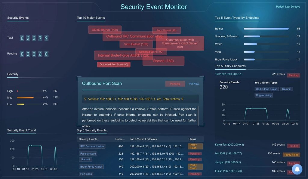 - Notfallmaßnahmen definieren: Ein anomaler Datenverkehr muss Abwehrmaßnahmen durch Firewalls, Antivirus, Endpoint Detection and Response oder Identitätsmanagement auslösen. Das Blocken von Systeme, Netzsegmenten oder ein automatisches Snapshot Backup verhindert Schäden vorbeugend.