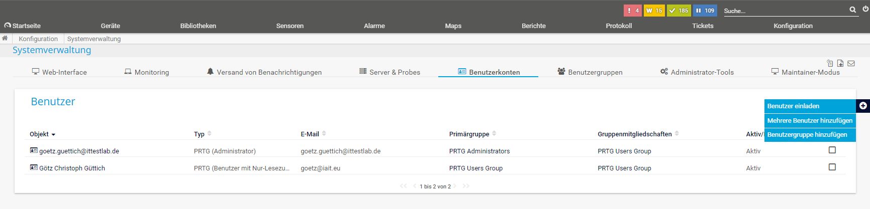 Der PRTG Hosted Monitor setzt auf dem On-Premises-PRTG-Server auf und der Funktionsumfang ist fast identisch. Es gibt nur ein paar Unterschiede in den Dialogen und Einstellungen, um das Produkt an die Arbeit in der Cloud anzupassen. Beispielsweise bei der Benutzerverwaltung und der Standardspeicherdauer der Monitoring-Daten.