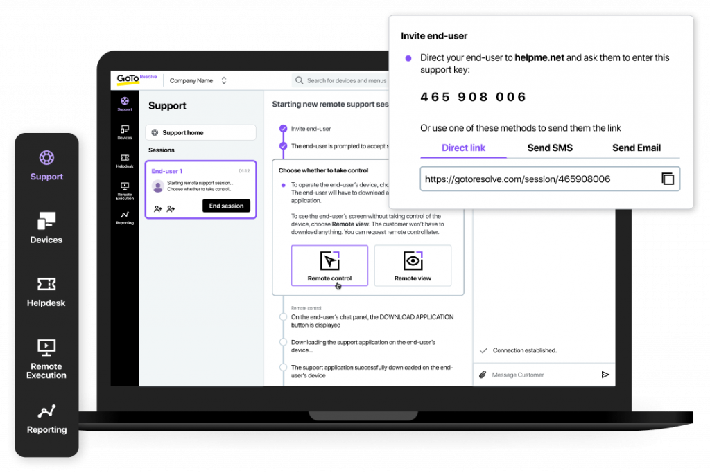 Konsolidierte IT-Management- und -Supportlösungen sind das notwendige Werkzeug für IT-Teams, um die Soft- und Hardware von Mitarbeitern und Kunden von überall aus zu verwalten und Fehler zu beheben. Dabei sind Funktionen wie Conversational-Ticketing-Support, Kamerafreigabe und automatische Netzwerk-Updates sehr hilfreich, um besonders schwierige Probleme aus der Ferne zu lösen, veraltete Geräte zu warten oder mit begrenzten IT-Kenntnissen auf Seiten der Mitarbeiter zu umgehen. Das bedeutet zwar nicht, dass die Verständigung zwischen IT-Teams und Endbenutzern immer einfach ist. Doch kann IT-Management und -Support im Remote-Zeitalter wirklich schnell, einfach und effektiv sein, wenn Unternehmen sich diesen Herausforderungen bewusst sind und gemeinsam daran arbeiten, diese zu lösen.