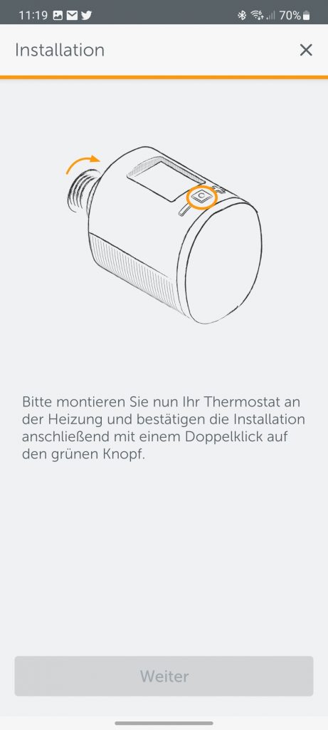 Sobald die Verbindung hergestellt wurde, können die Anwender dem Gerät einen Raum und einen Namen zuweisen. Danach müssen sie es – eventuell mit Hilfe der beigelegten Adapter – am gewünschten Heizkörper montieren und zweimal auf die grüne Taste drücken. Danach kalibriert sich das Produkt und ist betriebsbereit.
