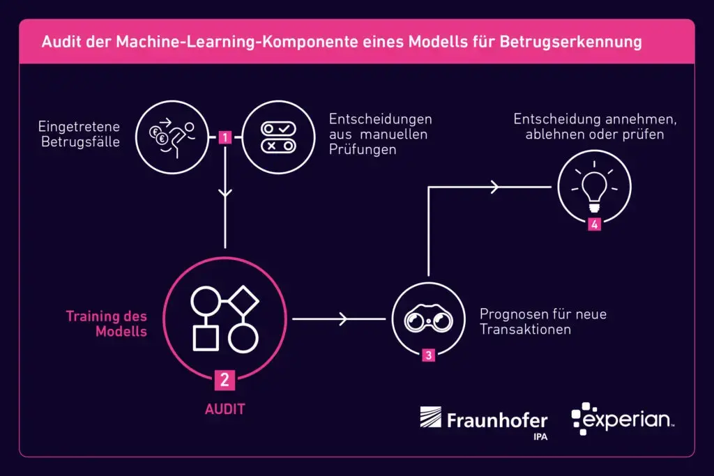 - Modelleinsatz und -überwachung: Nach dem Training und der Evaluierung kann ein ML-Modell auf neue Daten angewendet werden, um Vorhersagen zu treffen oder Klassifikationen vorzunehmen. Es ist wichtig, das Modell kontinuierlich zu überwachen und zu aktualisieren, um sicherzustellen, dass es weiterhin gute Leistungen erbringt und mit sich ändernden Daten oder neuen Betrugstrends umgehen kann.