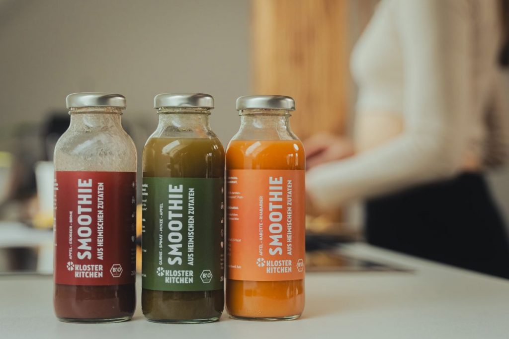 Kloster Kitchen hat bislang mit seinen Ingwer-Drinks Furore gemacht. In einer Kooperation mit dem Nürnberger Smoothie-Hersteller kraftschluck wagt sich das Unternehmen nun auch in den Smoothie-Markt. Die drei Geschmacksrichtungen: Apfel-Karotte-Rhabarber, Apfel-Erdbeere-Birne und Gurke-Spinat-Minze-Apfel sind ab sofort online erhältlich. So setzt das Kloster Kitchen-Team auf heimische Früchte und Gemüse.