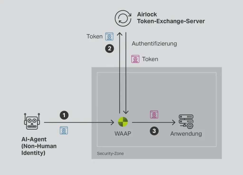 Die zunehmende Nutzung von KI-Agenten, APIs und Microservices erfordert sichere Authentifizierung über mehrere Sicherheits- und Vertrauensdomänen hinweg. Unternehmen stoßen jedoch schnell an Grenzen, wenn KI-Bots oder Mitarbeitende auf Systeme wie SAP außerhalb der eigenen Identitätsdomäne – etwa Microsoft 365 mit Entra ID – zugreifen möchten. Airlock verzeichnet daher steigende Nachfrage nach Lösungen, die den sicheren KI-Einsatz trotz paralleler Identitätsdomänen mit unterschiedlichen Identity Providern (IdP) ermöglichen. Um Unternehmen hier Orientierung zu bieten, rückt der Spezialist das Konzept des „Token Exchange“ in einem aktuellen Whitepaper in den Fokus. Mit der 2024 integrierten Token-Exchange-Funktionalität (RFC 8693) des OAuth 2.0-Frameworks lassen sich Informationen aus verschiedenen Quellen und mit mehreren IdPs zentral und sicher autorisieren.