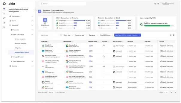Okta plant, die kontinuierlichen Erkennungsfunktionen auf die gängigsten KI-Plattformen und große Sprachmodelle (LLMs) auszuweiten. So können Sicherheitsteams genehmigte, potenziell risikoreiche Identitäten in kontrollierte Assets umwandeln und den gesamten Lebenszyklus von KI-Agenten effizient managen.