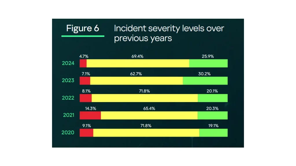 Der Report „Anatomy of a Cyber World“ von Kaspersky zeigt, dass der Anteil kritischer Sicherheitsvorfälle im Jahr 2025 auf 3,8 Prozent gesunken ist – der niedrigste Wert seit 2021. Im Vergleich zu 2024 (4,7 Prozent) entspricht dies einem Rückgang um 19 Prozent, gegenüber 2021 (14,3 Prozent) sogar einem deutlichen langfristigen Abwärtstrend. Als kritisch gelten dabei Angriffe mit direkter menschlicher Beteiligung, die erhebliche Auswirkungen auf die IT-Infrastruktur haben.