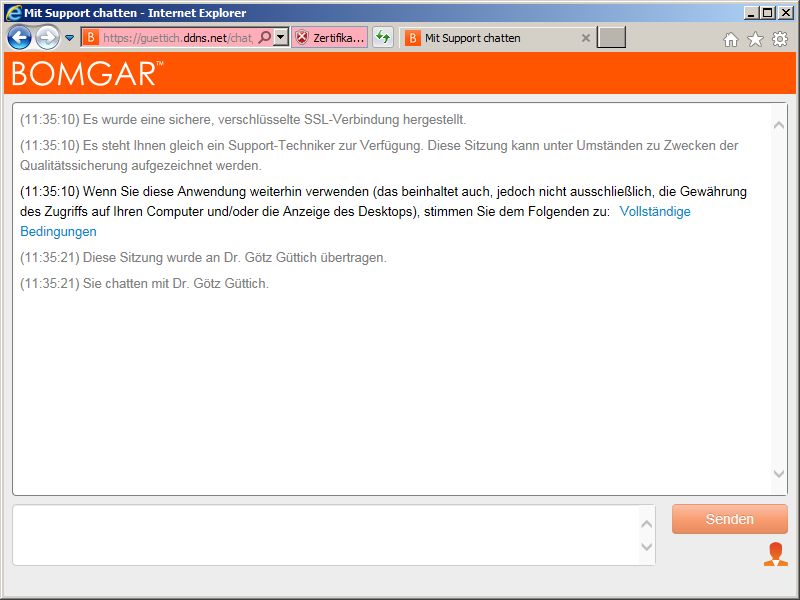 Am rechten Fensterrand bietet der Sitzungsreiter den Support-Technikern eine Chat-Funktion, über die sie mit den Anwendern an den Client-Systemen kommunizieren können. Dabei lassen sich auch vorgefertigte Einträge nutzen, die immer wieder vorkommen, wie etwa „Darf ich auf Ihren Bildschirm zugreifen?“ oder „Haben Sie versucht, Ihr System neu zu starten?“. Darüber hinaus senden die Mitarbeiter hier auch Dateien und pushen URLs, diese öffnen sich dann direkt im Client-Browser. Dazu kommen noch eine Notizfunktion und die Option, Daten an andere Support-Techniker weiterzuleiten. Gerade die Notizfunktion ist besonders wichtig, da sie es den Support-Mitarbeitern ermöglicht, zu allen durchgeführten Schritten Notizen anzulegen. Bei Bedarf zeigt die Bomgar-Lösung nach dem Ende einer Session sowohl für die Techniker, als auch für die Anwender einen frei definierbaren Fragebogen an, über den sich erfassen lässt, wie die Sitzung ankam, welche Erkenntnisse dabei gewonnen wurden und wo es Verbesserungsmöglichkeiten gibt.
