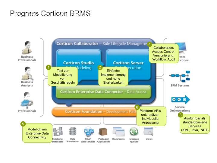 Bei modellgesteuerten Lösungen für das Management von Geschäftsprozessen und -regeln ist nicht nur das Was (das Ziel), sondern auch das Wie (die Umsetzung) gefragt. Entscheidend ist der permanente Soll-Ist-Abgleich, um Abweichungen möglichst schnell feststellen und gegensteuern zu können. Das gilt den gesamten Lebenszyklus von Geschäftsprozessen – angefangen von der Analyse über die Planung, die Modellierung, die Einführung, die IT-gestützte Ausführung bis hin zur Modernisierung und permanenten Optimierung.