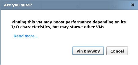 Möchte ein Administrator sicherstellen, dass eine VM mit einer besonders hohen Leistung arbeitet, so kann er mittels der „Pin to Flash“-Funktion dafür sorgen, dass die betroffene virtuelle Maschine ausschließlich im Flash-Speicher läuft. Dabei muss er sich allerdings darüber im Klaren sein, dass dieser Speicher dann nicht mehr für andere VMs verfügbar ist.
